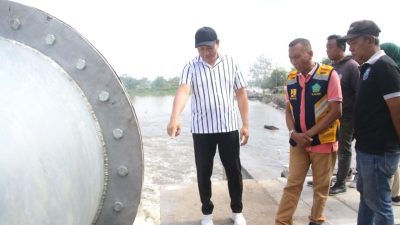 SIDOARJO, BMN – Bupati Sidoarjo Subandi bersama Kepala Dinas PUBM Muhammad Makhmud serta Camat Candi meninjau DAM Kedungpeluk yang telah selesai pengerjaannya. Meskipun sudah selesai Subandi menyoroti kualitas pekerjaan yang dinilai belum maksimal. Hasilnya, Subandi meminta kontraktor segera melakukan perbaikan.