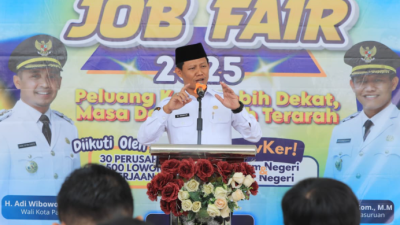 KOTA PASURUAN, BARMIDNEWS – Dinas Tenaga Kerja (Disnaker) Kota Pasuruan menggelar Job Fair 2025 bertajuk ‘Peluang Kerja Lebih Dekat, Masa Depan Lebih Terarah’, di Gedung Harmoni Kota Pasuruan. Ribuan pencari kerja berbondong-bondong antusias membawa lamaran kerjanya untuk mendapatkan posisi di Lowongan Kerja yang disediakan oleh sekitar 30 perusahaan besar tersebut.